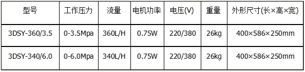 上海楷陽3DSY型電動試壓泵的性能參數(shù)如下: