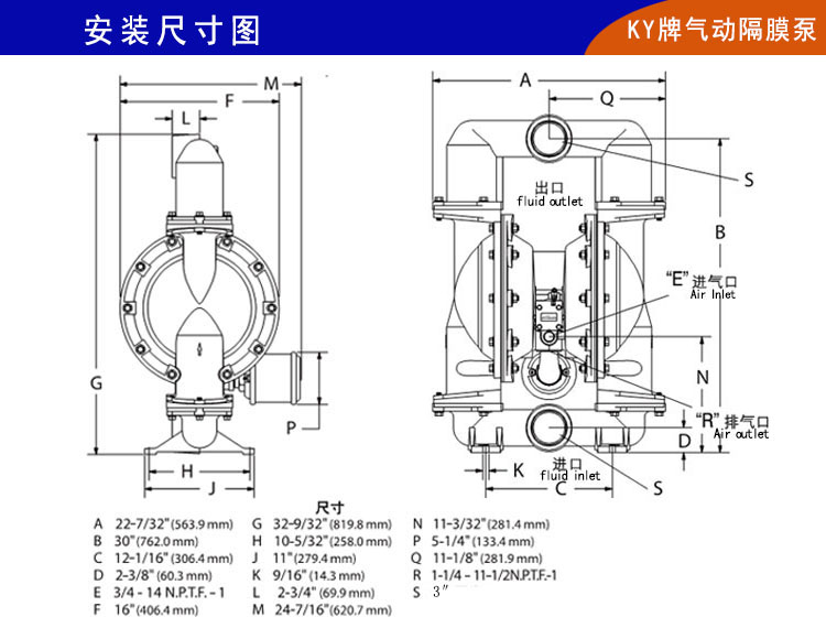 2)、KY-80LP不銹鋼氣動隔膜泵整體構造上更加優化,泵腔和主管路都有明顯加強,自吸功能和流量揚程都有很大改善。