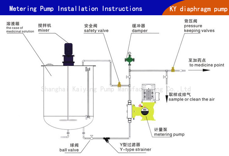 11.KY牌隔膜計量泵廣泛用于造紙、食品、釀酒、制革、印染、紡織、化工、煉油、電鍍等工業廢水及生活污水和加藥系統。