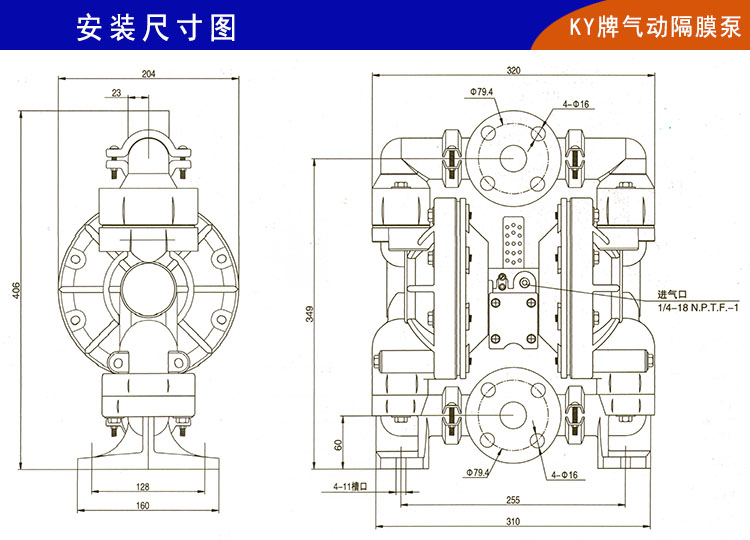 11)楷陽KY牌氣動隔膜泵可做多種材質泵體,具有良好的抗腐蝕性,適用于各種介質