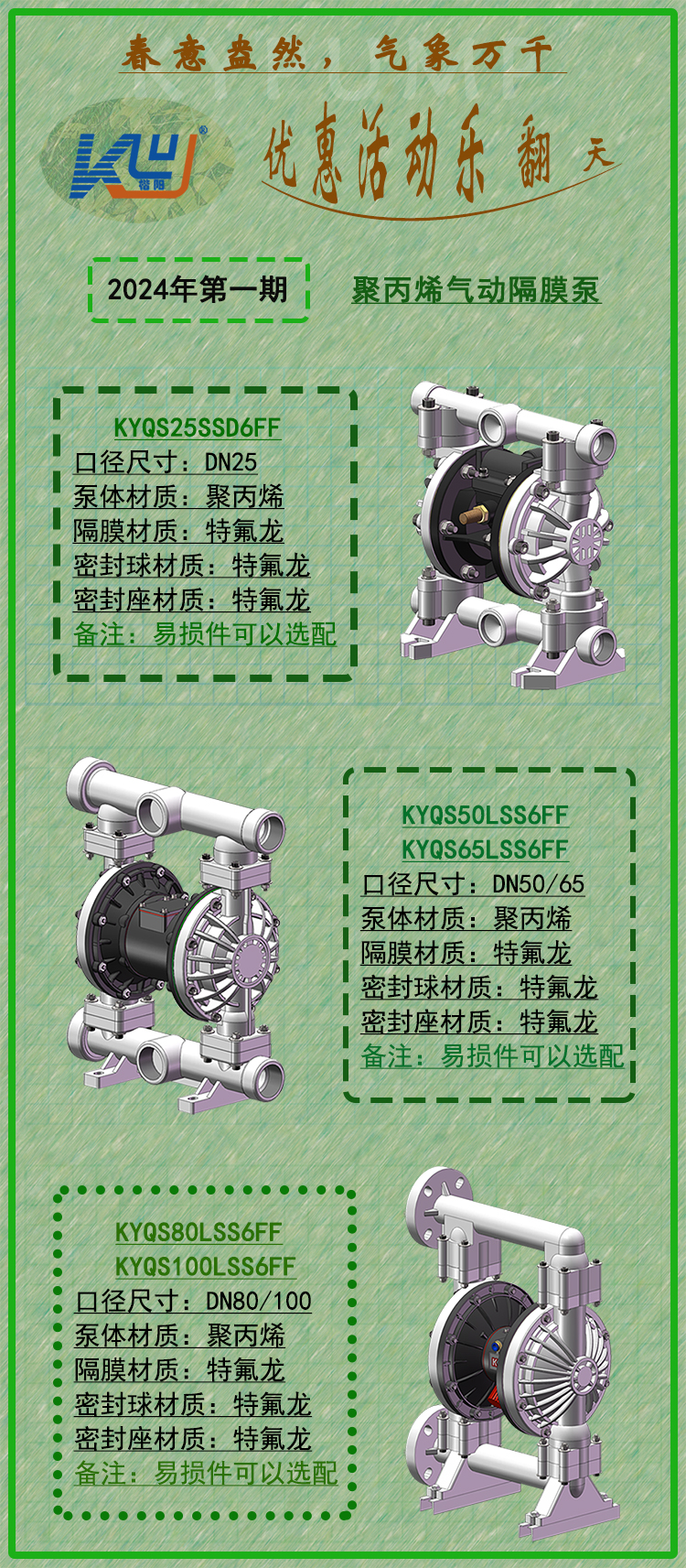 1、本次優惠活動均為KYQS系列聚丙烯材質產品;如果您需要以上活動規格產品,但是隔膜配置不一樣,我們同樣可以列入活動范圍(如需要配置單層隔膜產品等)。