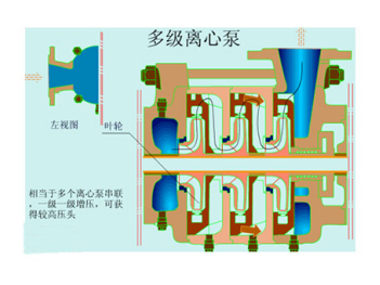 相當(dāng)于多個(gè)離心泵串聯(lián),一級一級增壓,可獲得較高壓頭。