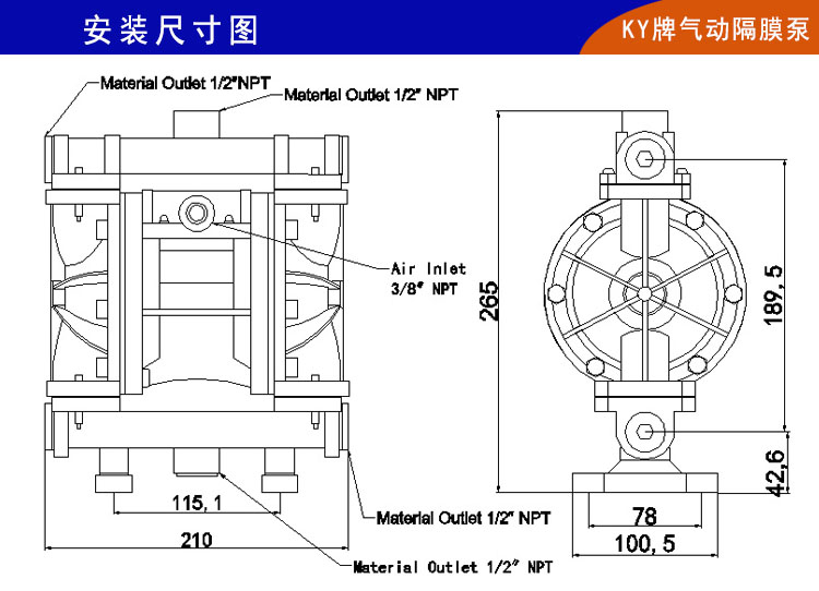 3、KY-15SS聚丙烯PP氣動隔膜泵最大的特點(diǎn)是供氣壓力在0.2Mpa以上就可以正常啟動(老型QBY型氣動隔膜泵供氣壓力需要0.5Mpa以上才可以正常運(yùn)轉(zhuǎn)),不用再為氣動設(shè)備多導(dǎo)致氣壓不足而停機(jī)。