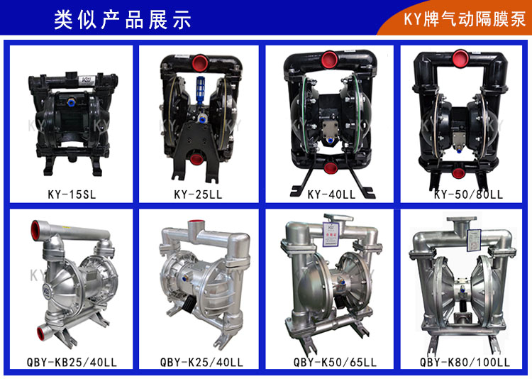 4)、如果輸送介質工況比較惡劣,含強酸強堿且穩定比較高,可以選用楷陽鋼襯氟隔膜泵和全PVDF氟塑料氣動隔膜泵。