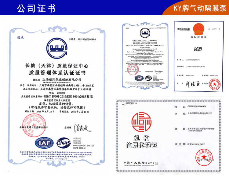 9、KY牌鋁合金氣動隔膜泵整體構造上更加優化,泵腔和主管路都有明顯加強,自吸功能和流量揚程都有很大改善。