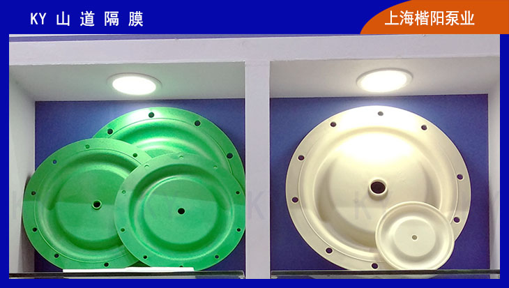 對于隔膜泵的主要易損件隔膜來說,對隔膜泵產品的品質起到至關重要的作用??柕母裟ば吞柡筒馁|也相當豐富,可以最大程度的滿足客戶的使用需求。山道橡膠隔膜是楷陽使用相對較多一種,第一因為它的抗老化性,比丁晴橡膠隔膜的老化速度延遲3-5倍;第二是它優秀的抗壓能力,是一些配套板框壓濾機隔膜泵的首選;第三它可以兼做主副隔膜,楷陽山道橡膠隔膜一般作為主隔膜時為黃顏色,作為副隔膜時為綠顏色。如有更多疑問請撥打全國免費熱線:400-060-5950,謝謝!