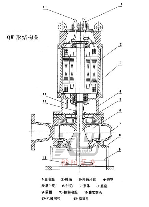 5、葉輪和泵體之間的密封環具有密封功能,如密封損壞將直接影響到泵的性能,必要時應更換。整體結構緊湊、體積小、噪聲小、節能效果顯著,檢修方便,無需建泵房,潛入水中即可工作,大大減少工程造價。