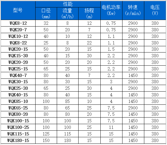 (8)長期抽送高含砂量的液體對WQK/QG帶切割裝置排污泵的過流部件磨損較大,推薦使用本廠旋流式污水污物潛水電泵產品。